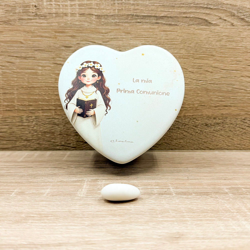 Scatola Cuore Con Candela Comunione Bimba Claraluna