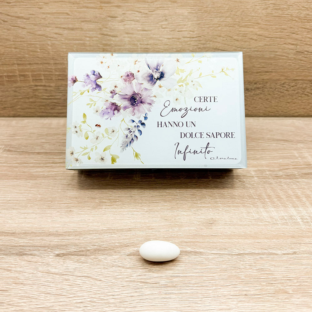 Il prezzo con la confezione comprende:Astuccio, Doppio Nastro, Gessetto o Fiore a Scelta, Portaconfetti e 5 Confetti.