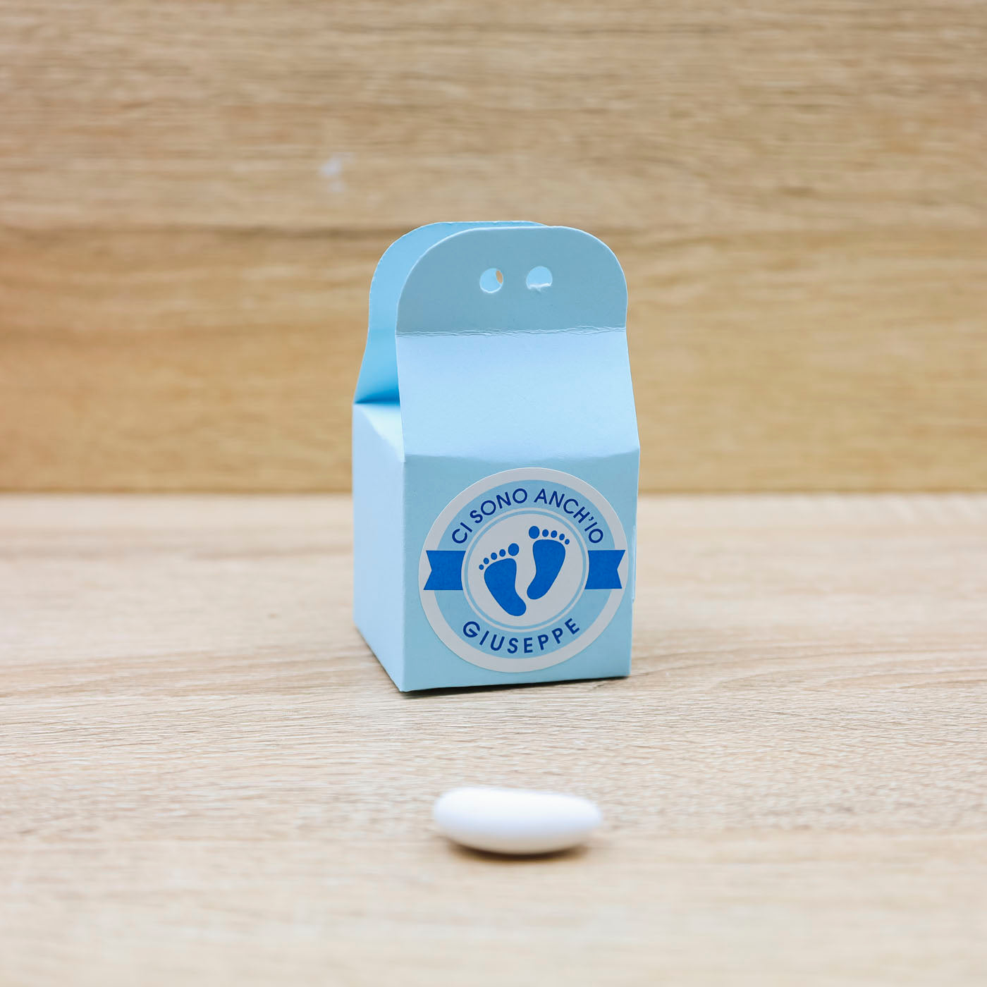Scatolina Portaconfetti Azzurra con scritta "Ci sono anch'io" con nome personalizzato -Made in Italy.