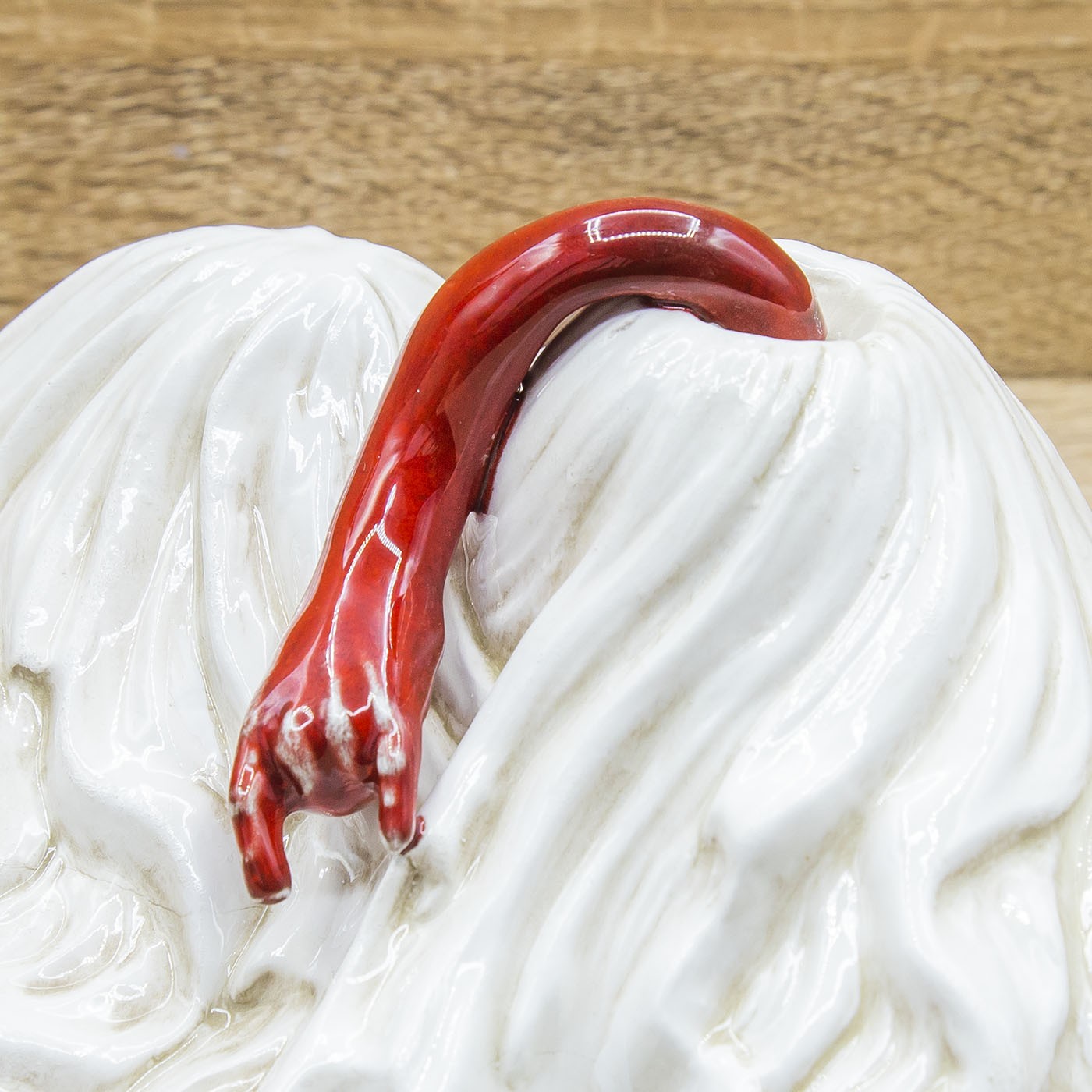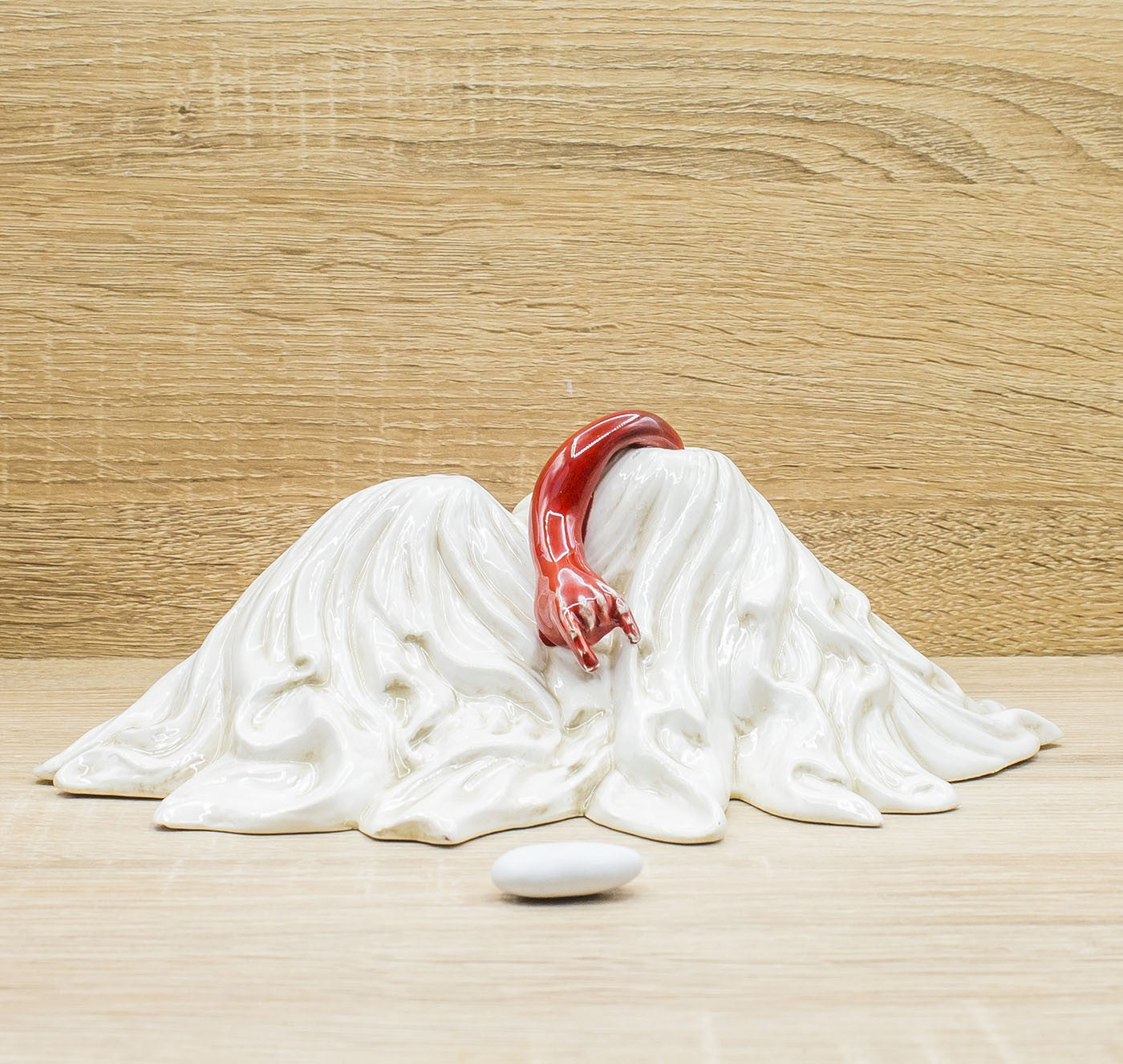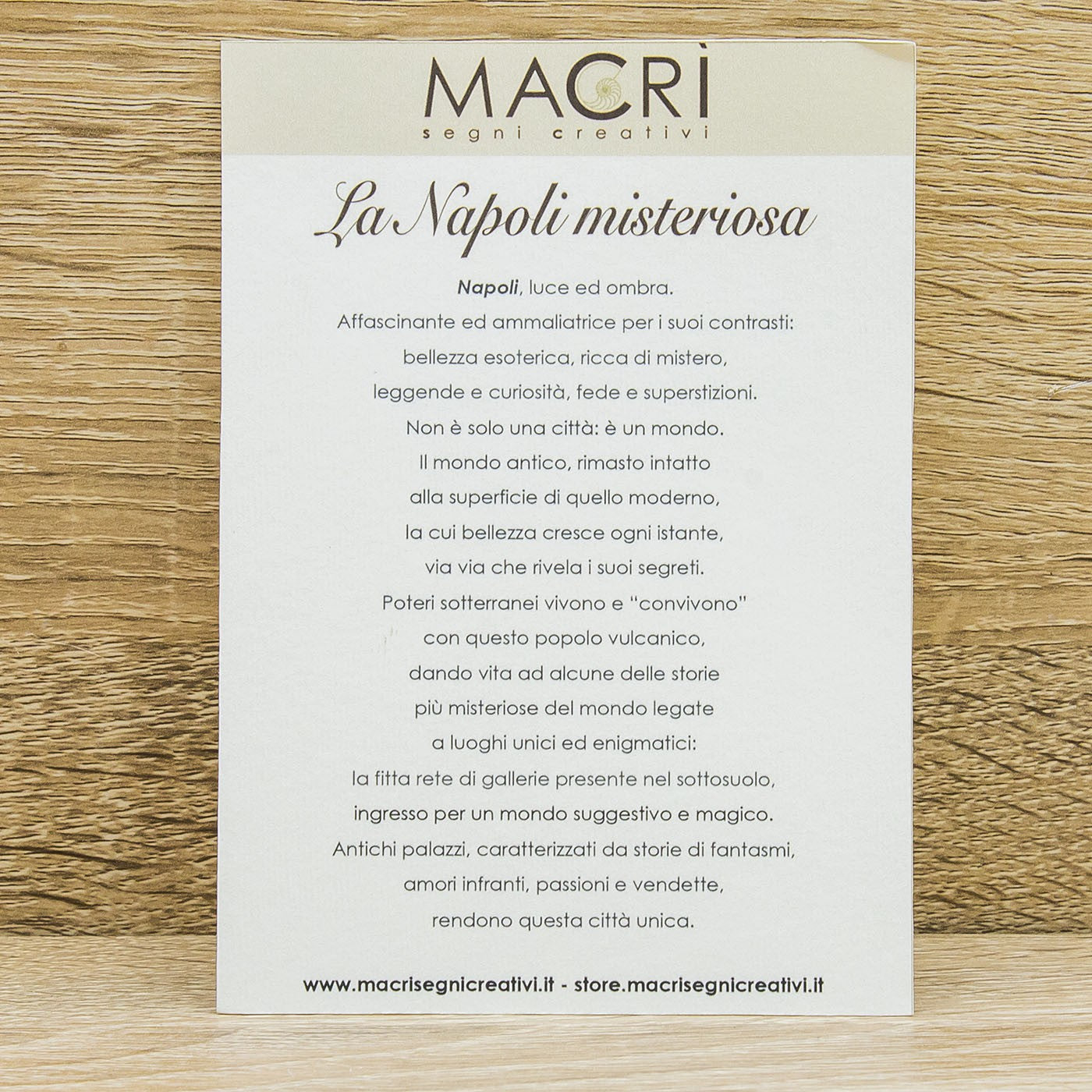 Scultura realizzata in terracotta modellata a mano, smaltata a secondo fuoco. La scultura "La Napoli Misteriosa" rappresentata dal Vesuvio, simbolo della nostra città, avvolto in un candido velo.