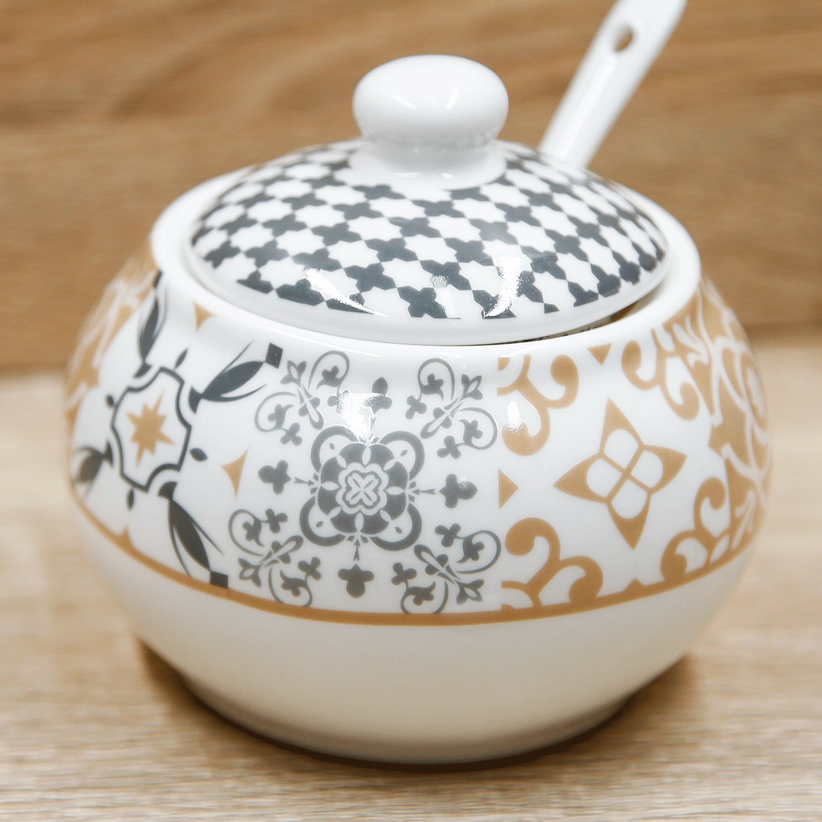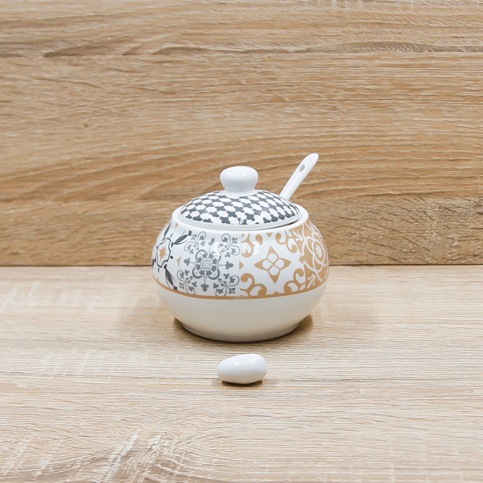 Bomboniera Utile, Zuccheriera e Cucchiaino Stile Maiolica, firmato Madrhélen.